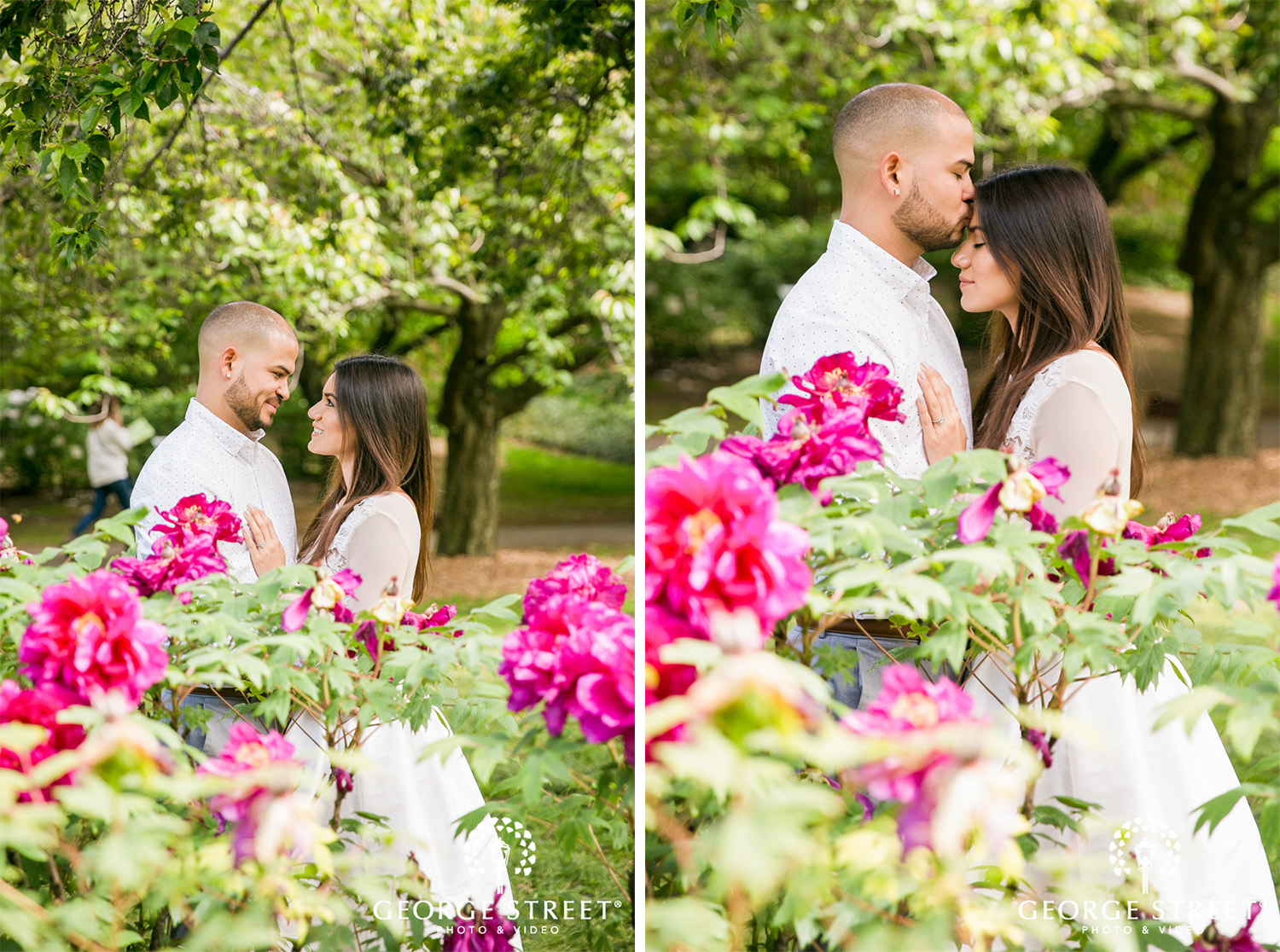 beautiful outdoor new york engagement shootnew york brooklyn botanical garden outdoor engagement portraitsnew york formal outdoor engagement portraits