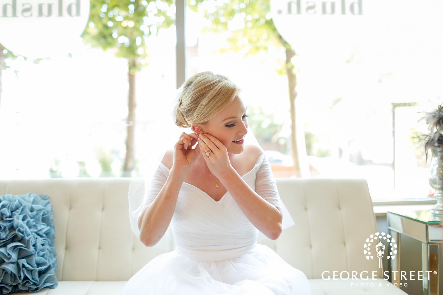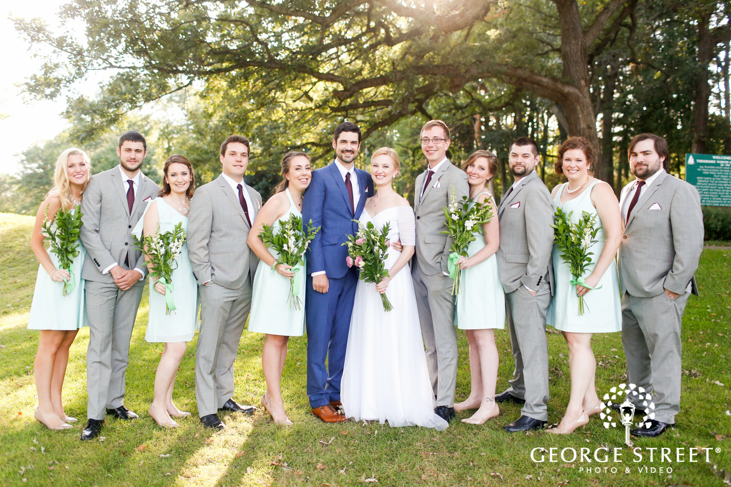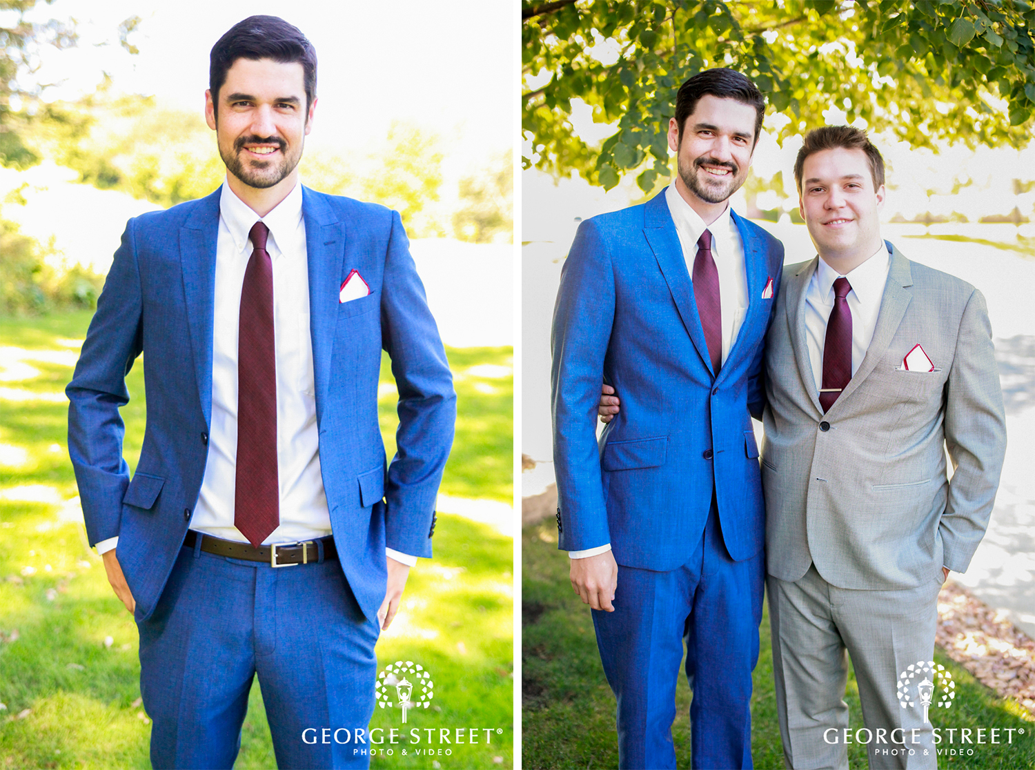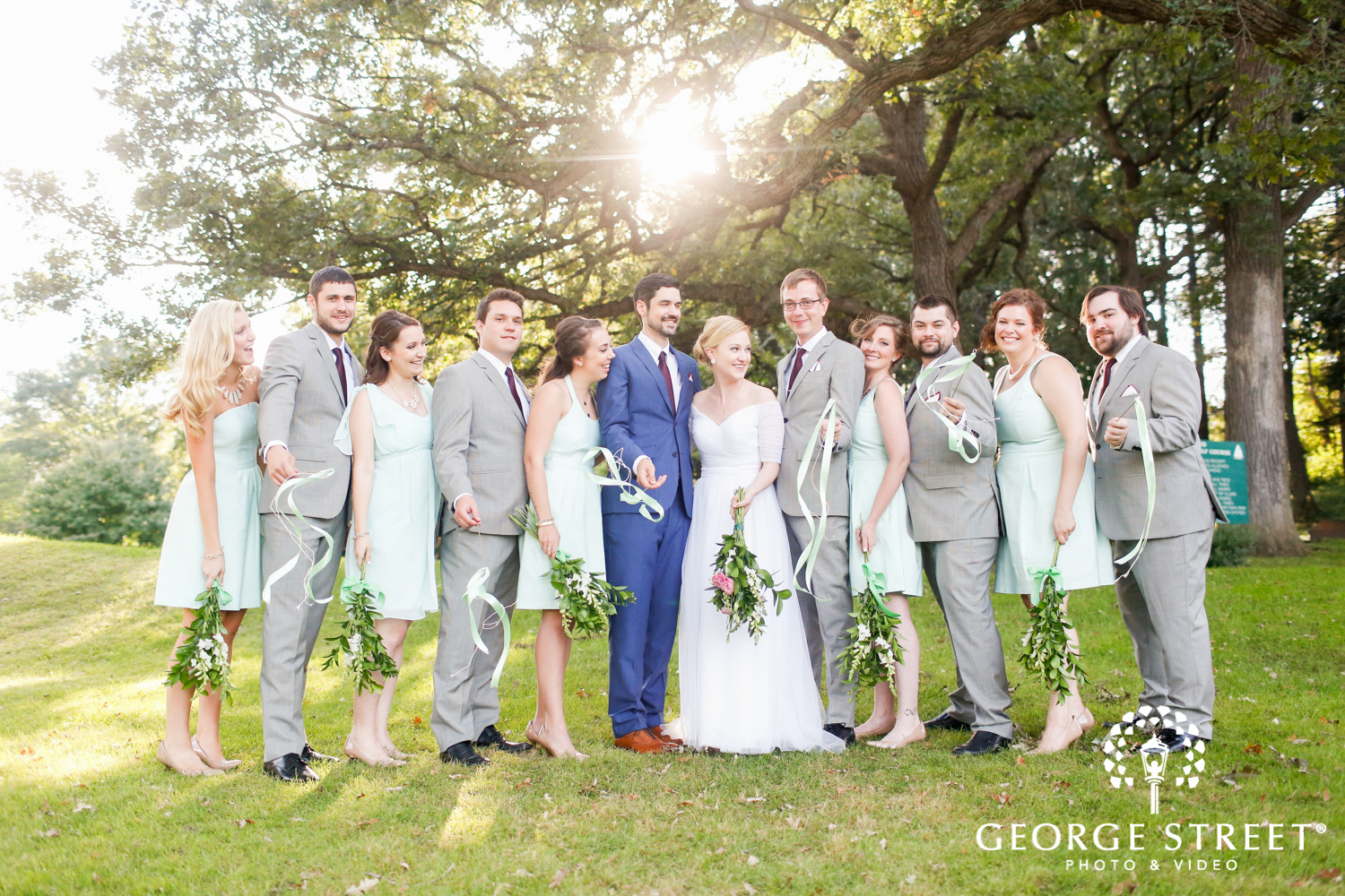 Ellie & Stephen’s romantic outdoor wedding was packed with elegance, exciting twists and turns and was gorgeously captured by their Minneapolis wedding photographer! Ellie’s off the shoulder chiffon wedding gown was breathtakingly beautiful and incredibly unique. The contrast added by Stephen’s cobalt blue suit is key! The vibrant punch it gives to the portraits will have wanting this color for your own groomsmen. Keep scrolling for more details you’ll absolutely adore!