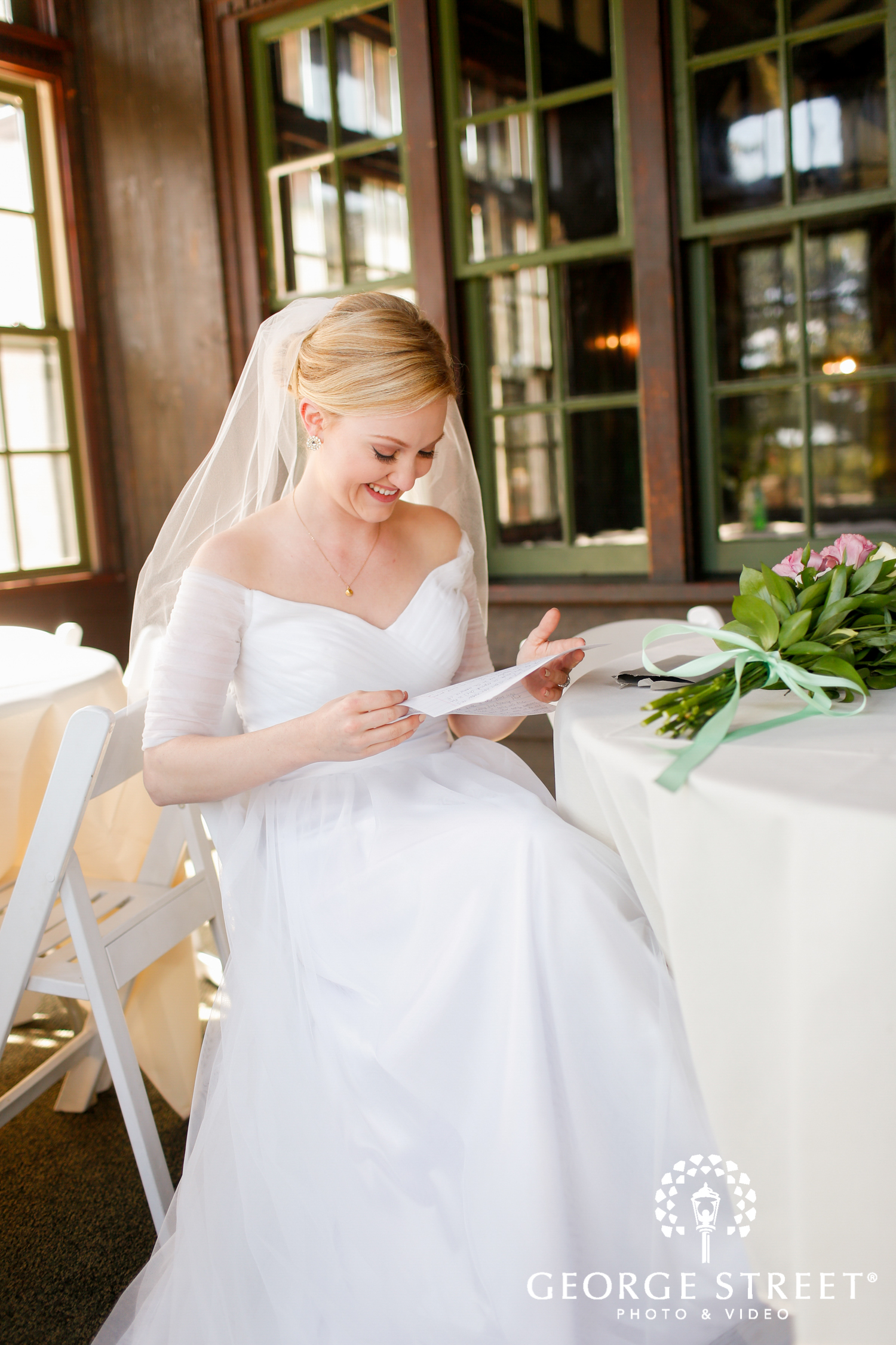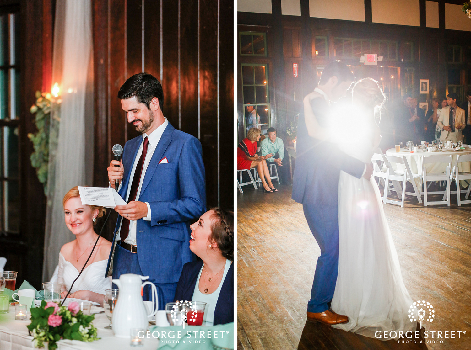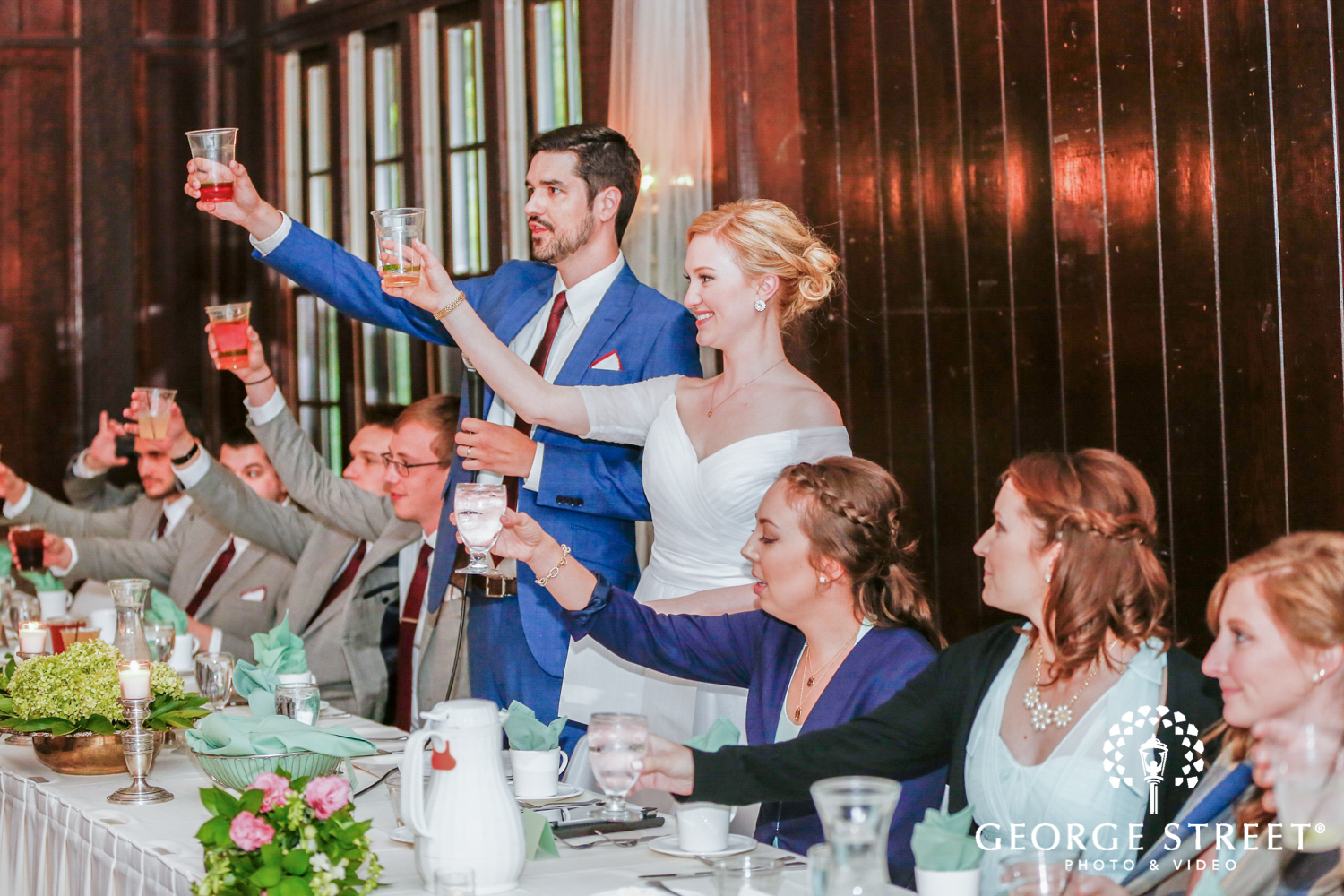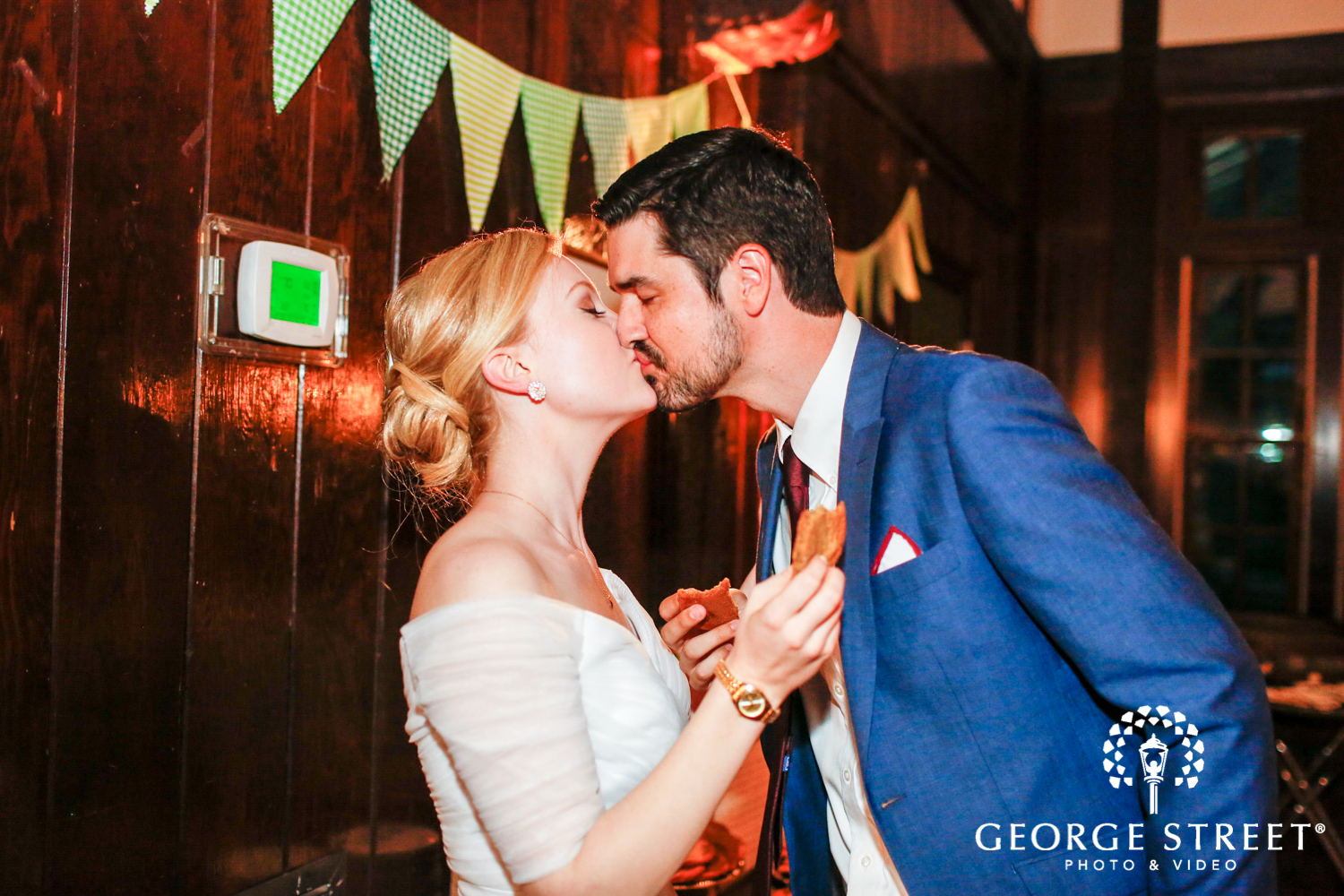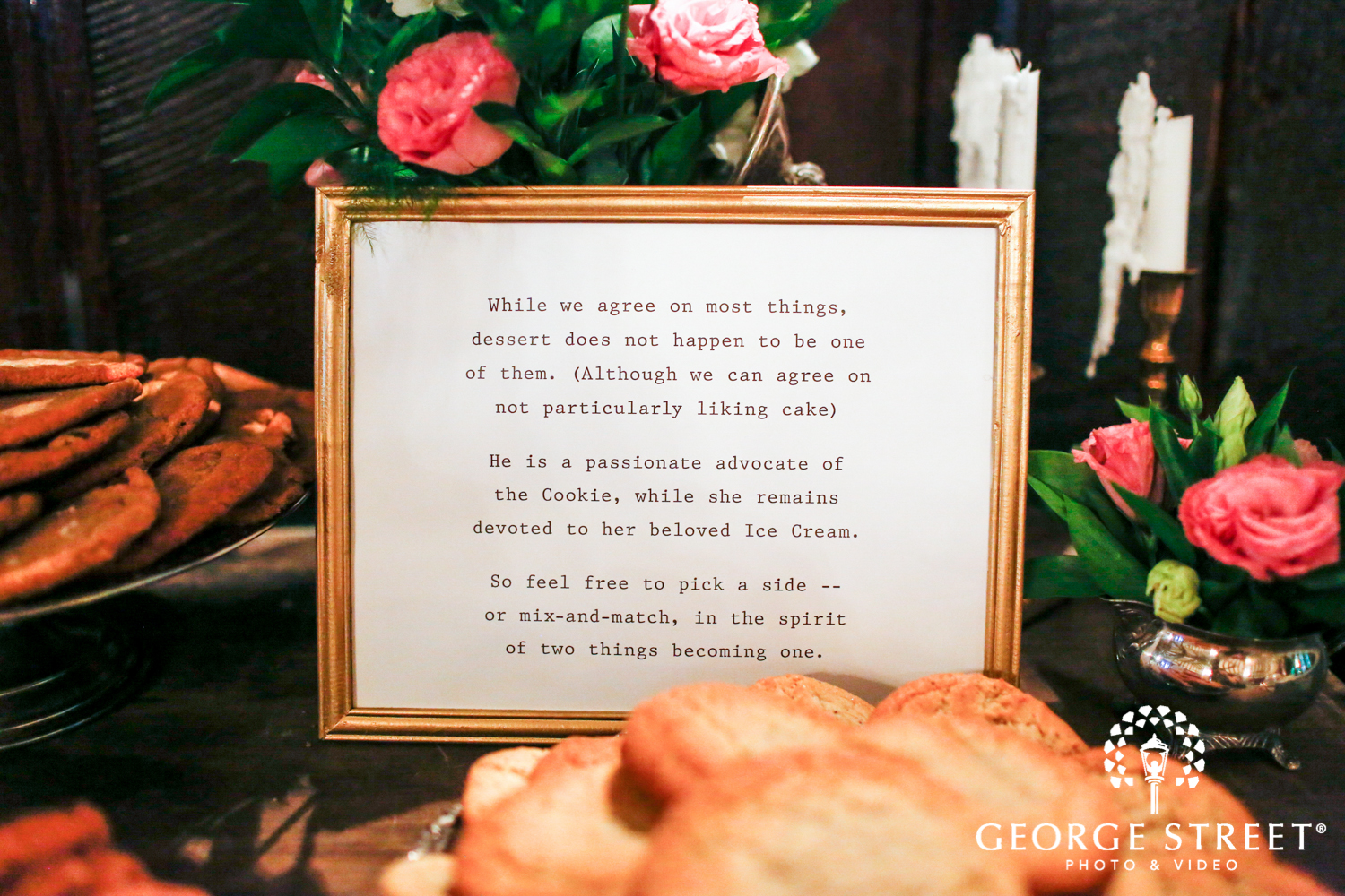 Who says you can’t have fun with your food? Ellie & Stephen had three different types of desserts at their wedding! Their adorable sign explained the story behind this decision. They also included a s’mores bar outside, which is a cute and delicious way to get your guests to interact during your wedding! We love when couples add additional ingredients to the traditional chocolate square, marshmallow and graham cracker combination. Maybe try Reese’s cups on the inside or Oreos as your base. Ellie & Stephen added fresh raspberries -- Yum!