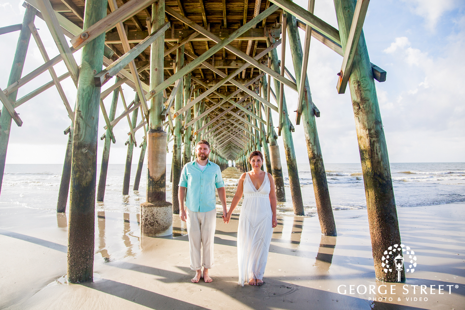 The Folly Beach Pier in Charleston, South Carolina sits high above the water, creating the perfect backdrop underneath the almost cathedral-like tall wooden beams. Whether off in the distance, below or atop a beach pier, this location provides endless opportunities for gorgeous portraits and stunning views. This session will leave us dreaming of that sweet summertime breeze for weeks to come!
