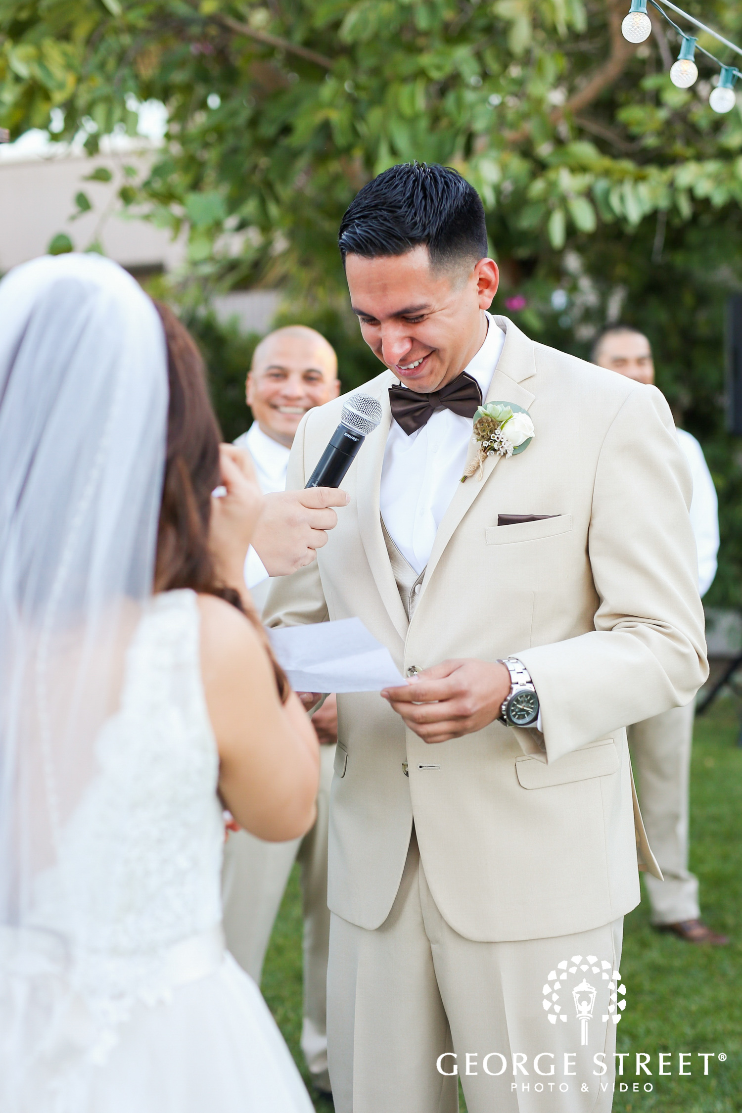 It is totally natural to feel nervous reciting your wedding vows in front of such a large audience on your wedding day. With handwritten vows, your spouse-to-be will know that you are speaking from the heart, and that is what truly matters. Joanne and Oscar prove that when you’re talking to your best friend, you will feel like you are the only two in the room. We love how this San Diego wedding photographer captured these candid moments of the bride and groom with their vows. The photos of this sweet moment are truly worth a thousand words!