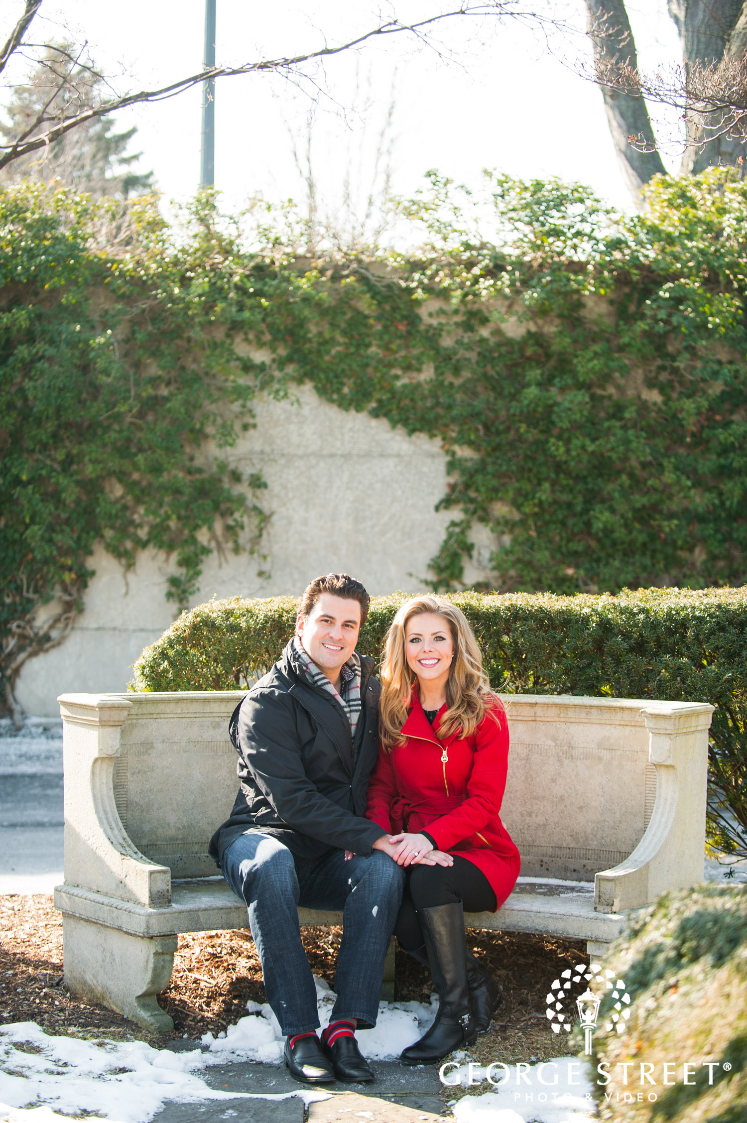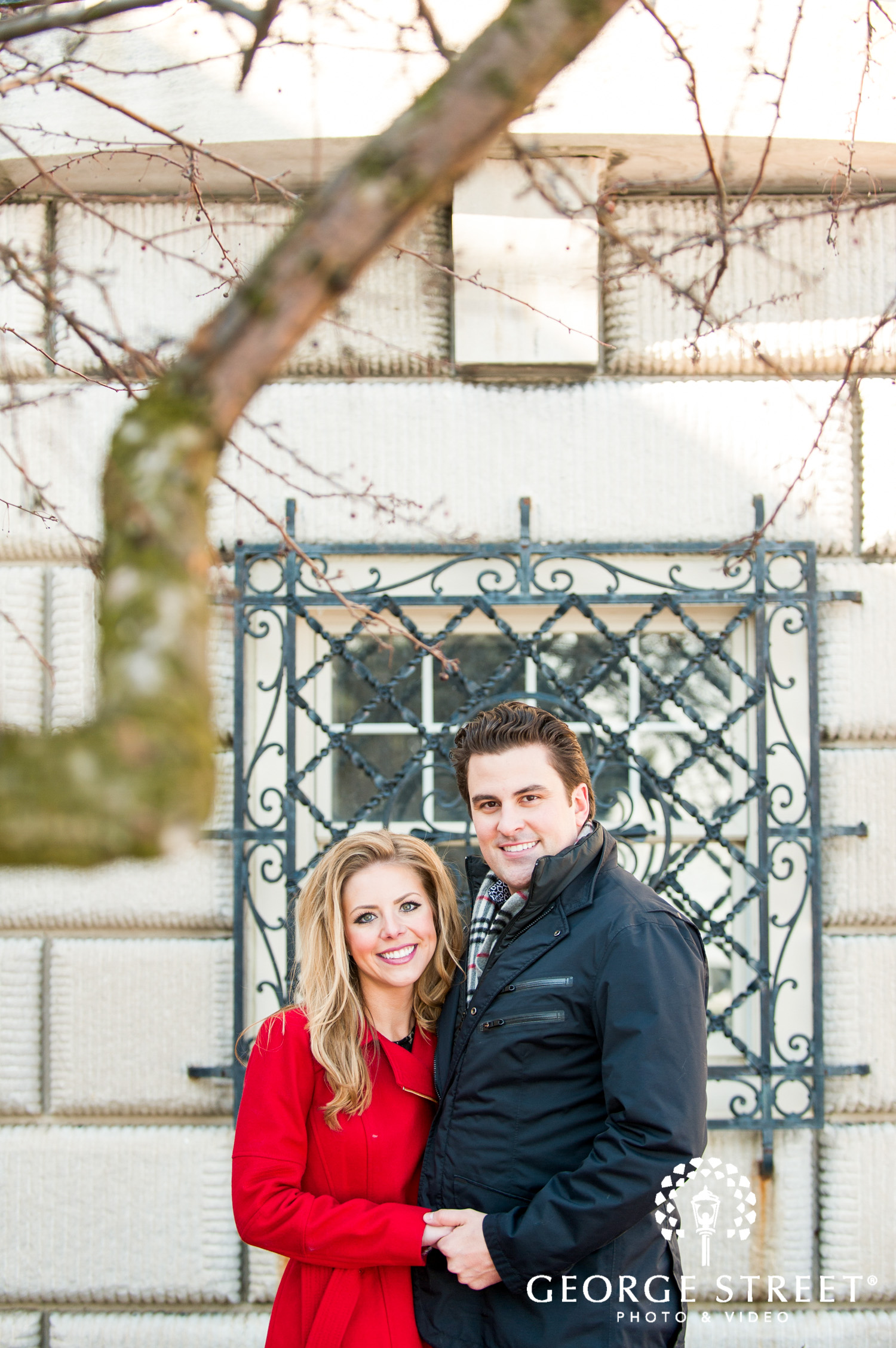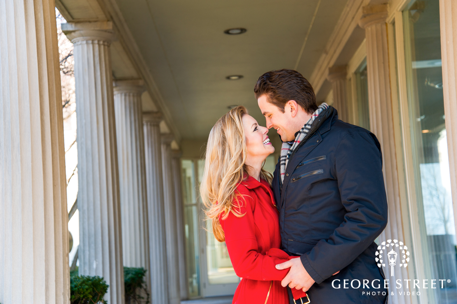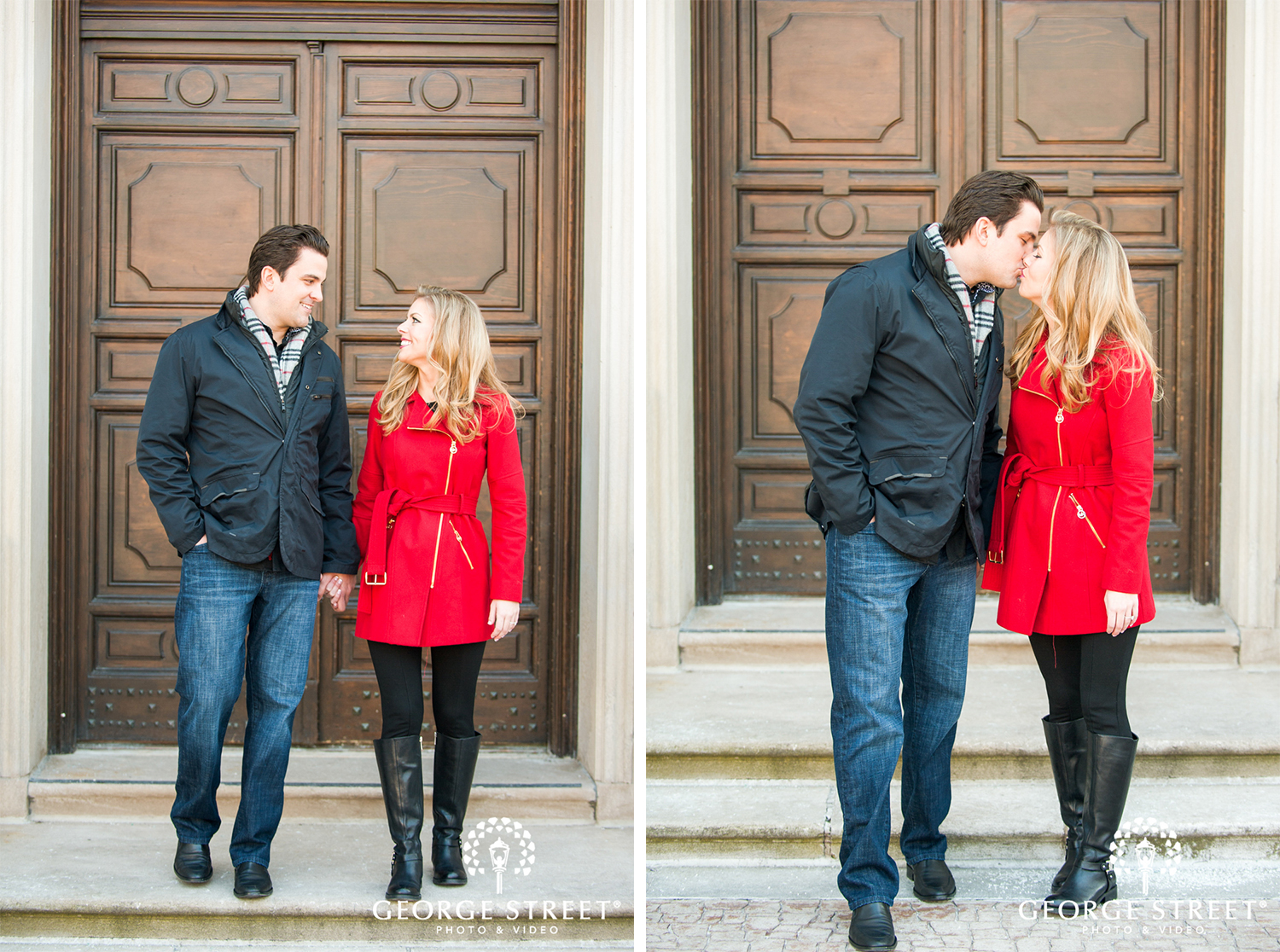 Don’t fight the cold, embrace it! Winter can be one of the most beautiful times for outdoor engagement photography. These two used their snowy surroundings and the iconic architecture of the Grosse Pointe War Memorial as the backdrop for their session. Their Detroit engagement photographer certainly had plenty of great portrait locations to choose from!