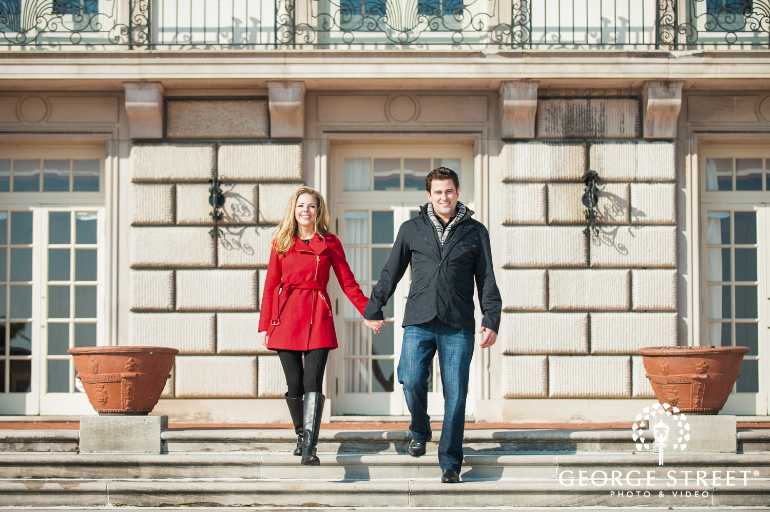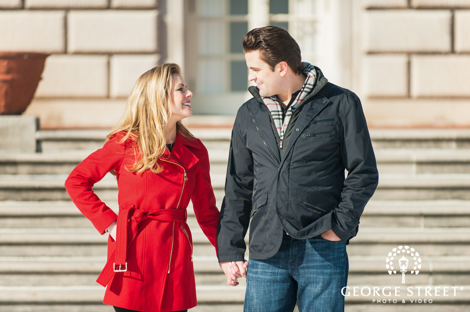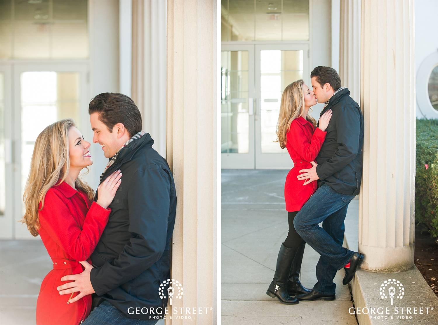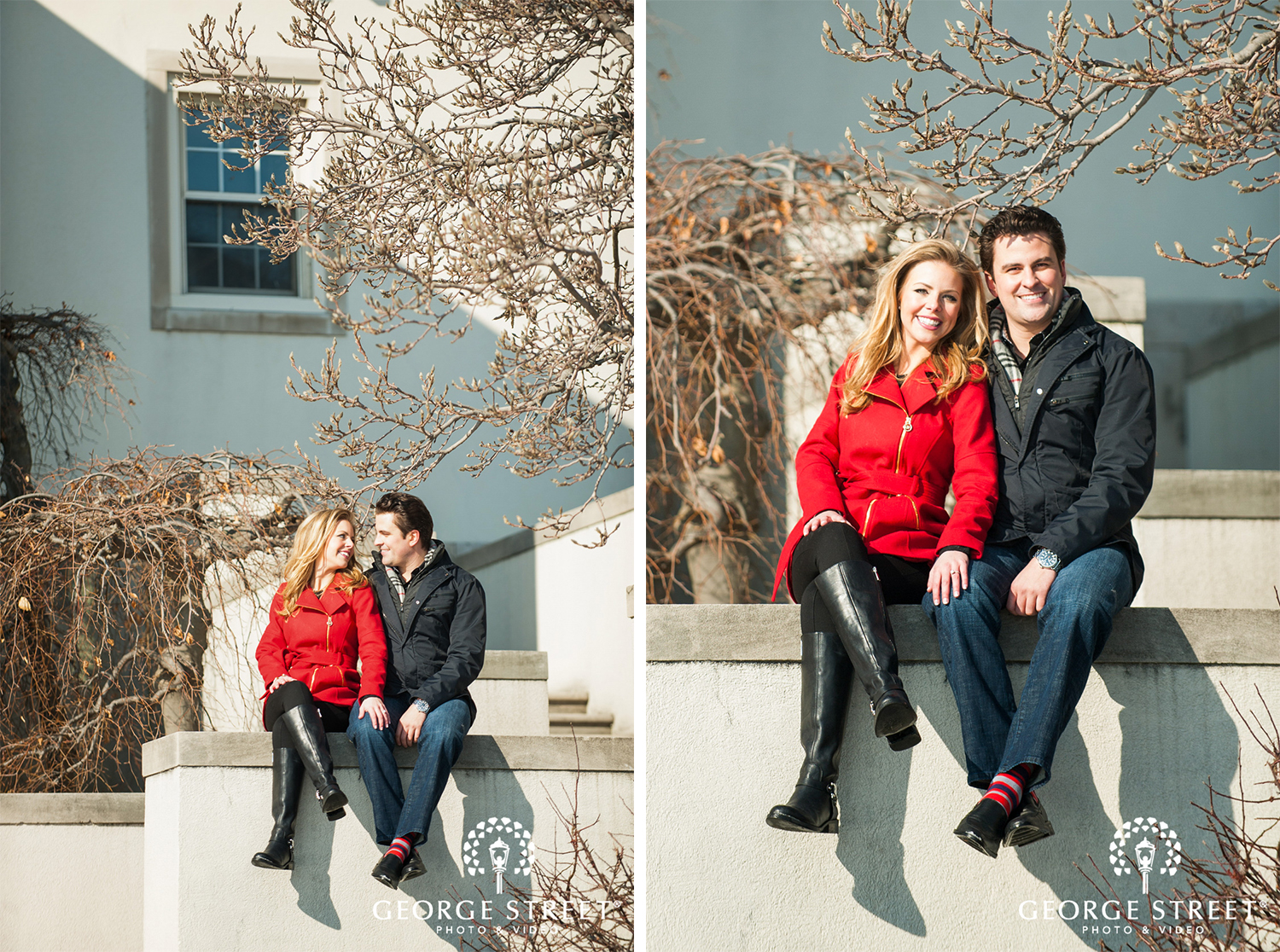Don’t fight the cold, embrace it! Winter can be one of the most beautiful times for outdoor engagement photography. These two used their snowy surroundings and the iconic architecture of the Grosse Pointe War Memorial as the backdrop for their session. Their Detroit engagement photographer certainly had plenty of great portrait locations to choose from!