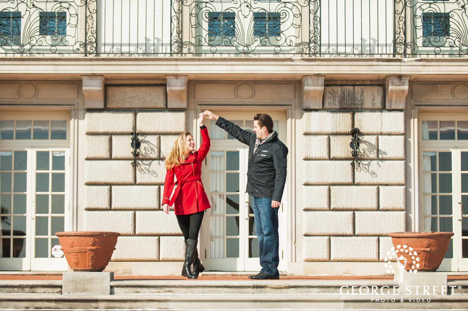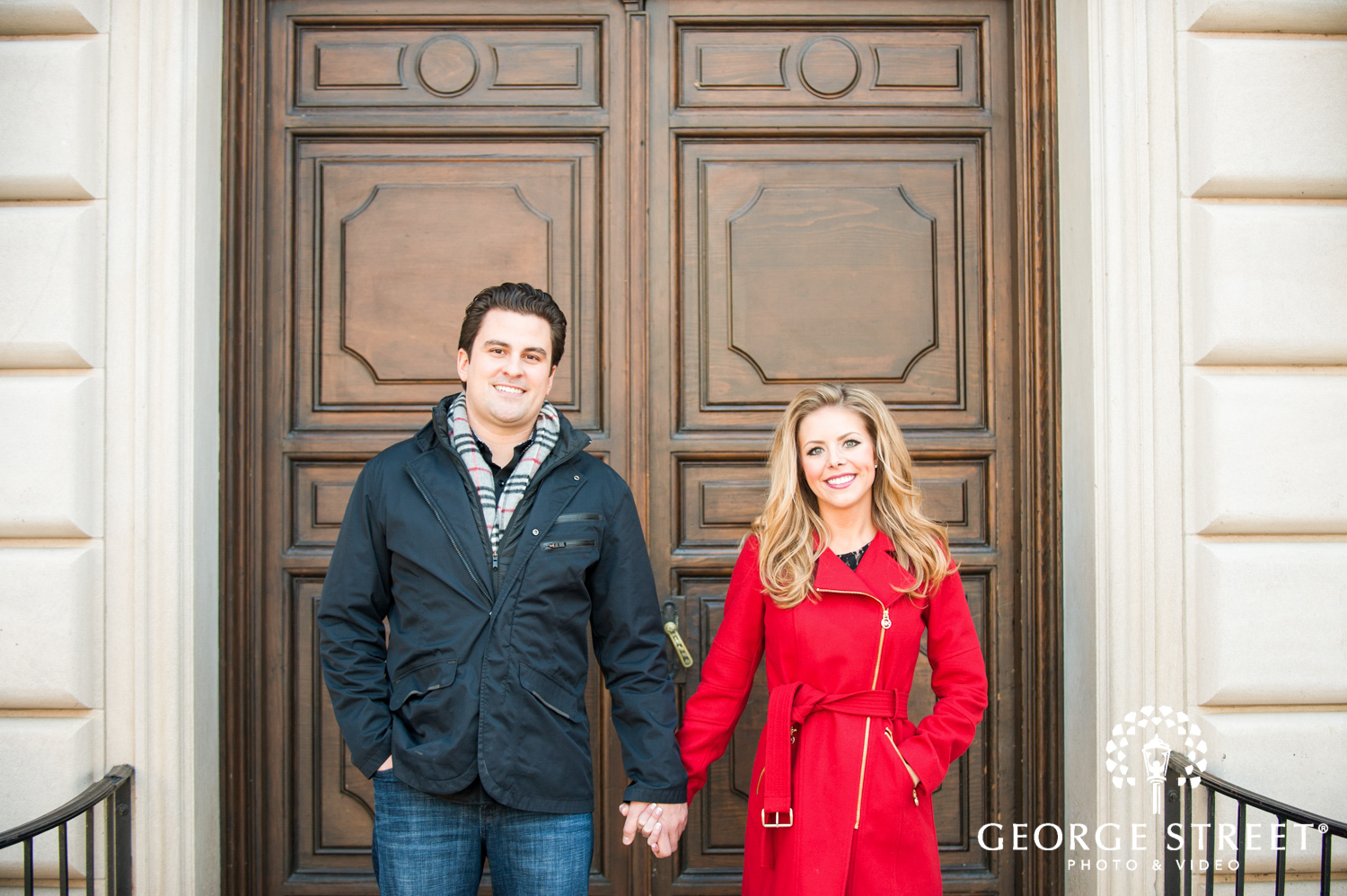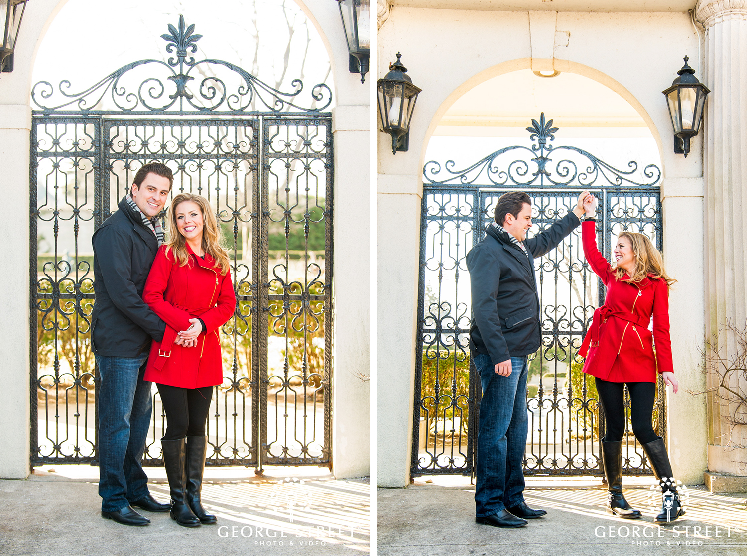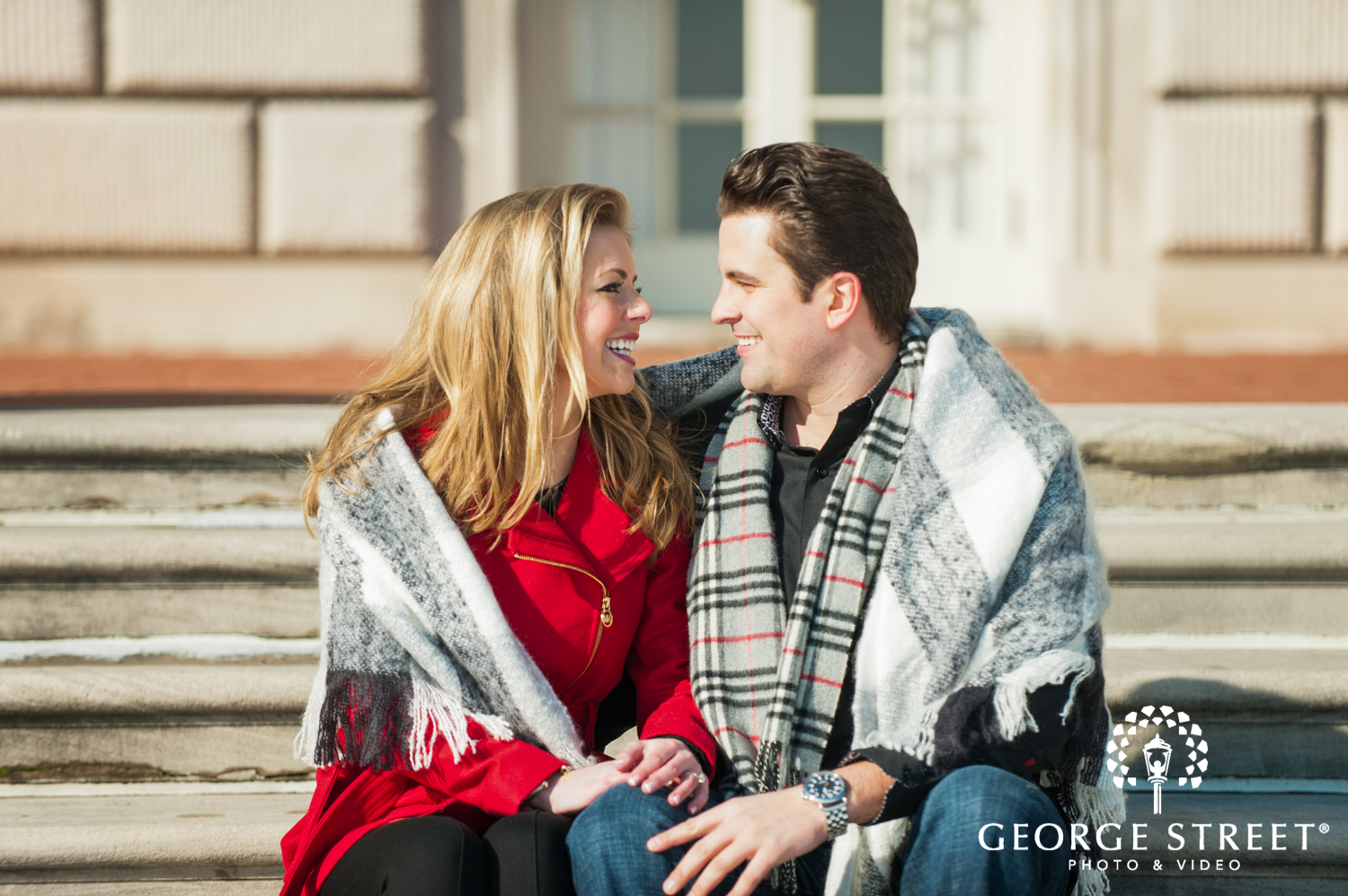 Don’t fight the cold, embrace it! Winter can be one of the most beautiful times for outdoor engagement photography. These two used their snowy surroundings and the iconic architecture of the Grosse Pointe War Memorial as the backdrop for their session. Their Detroit engagement photographer certainly had plenty of great portrait locations to choose from!