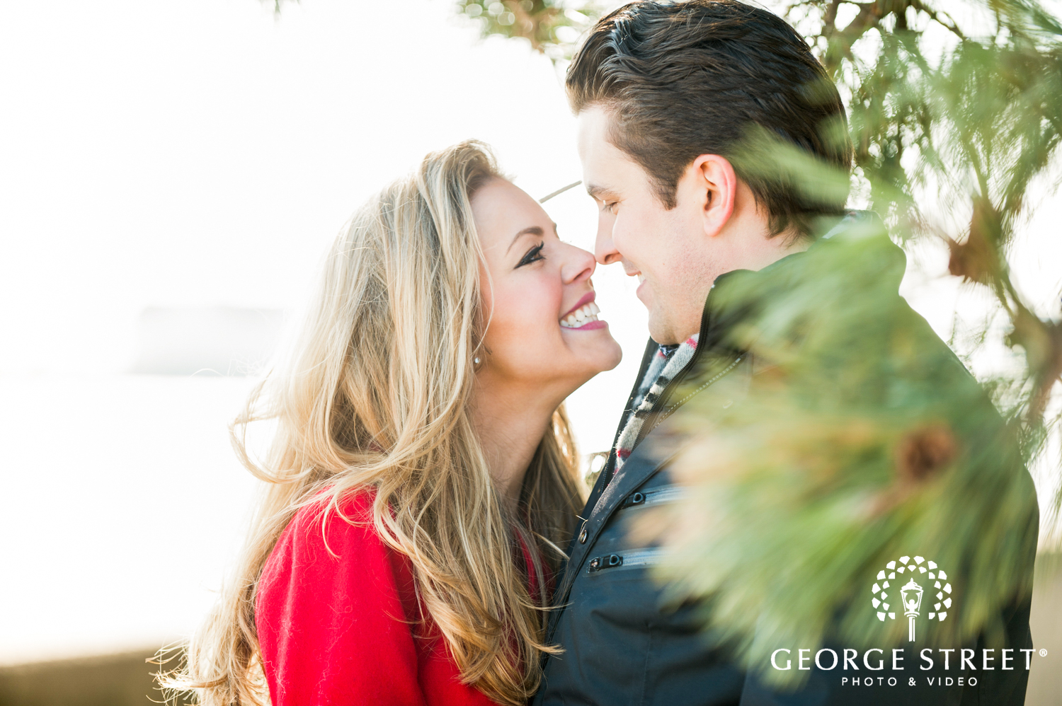 winter pine trees engagement photography