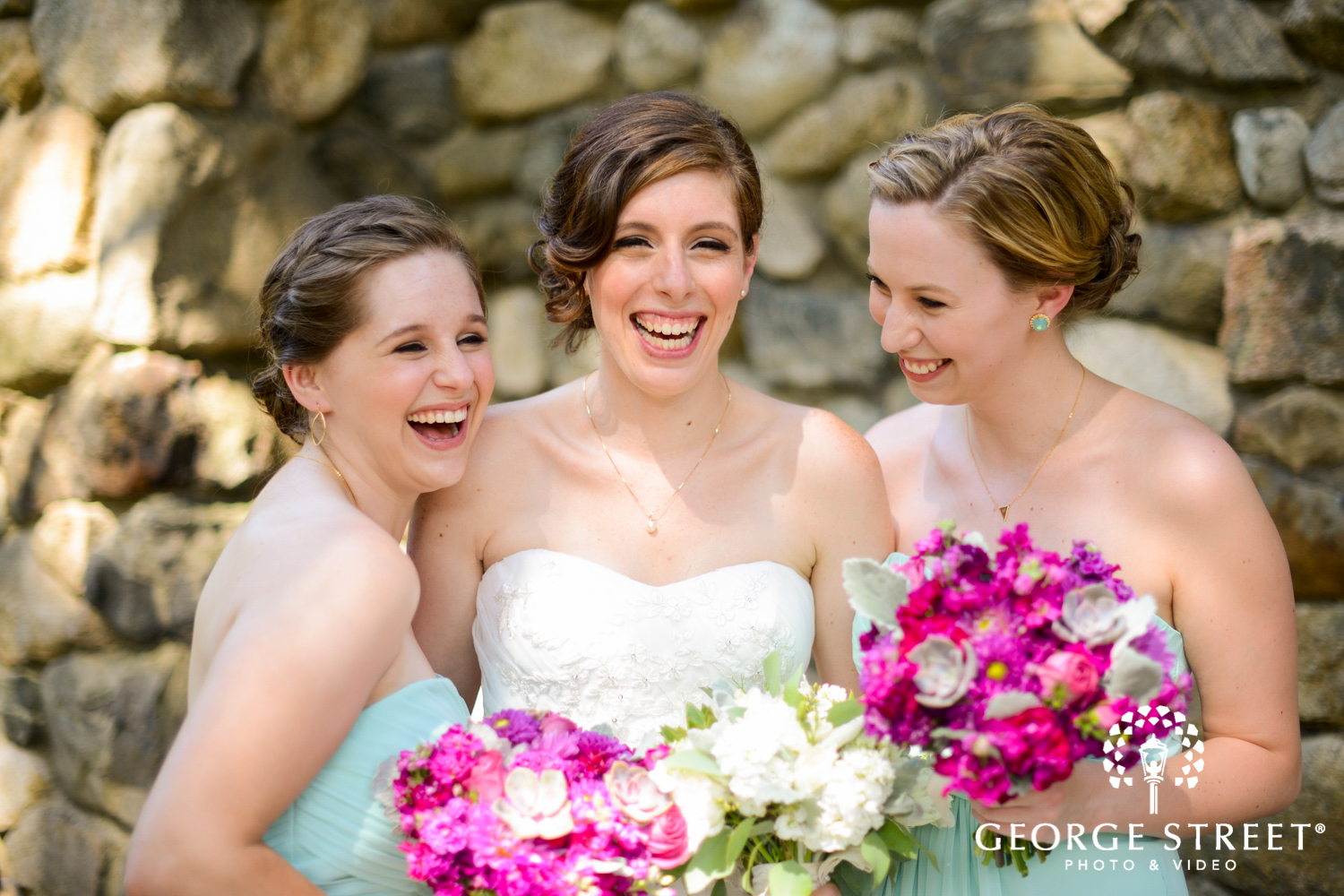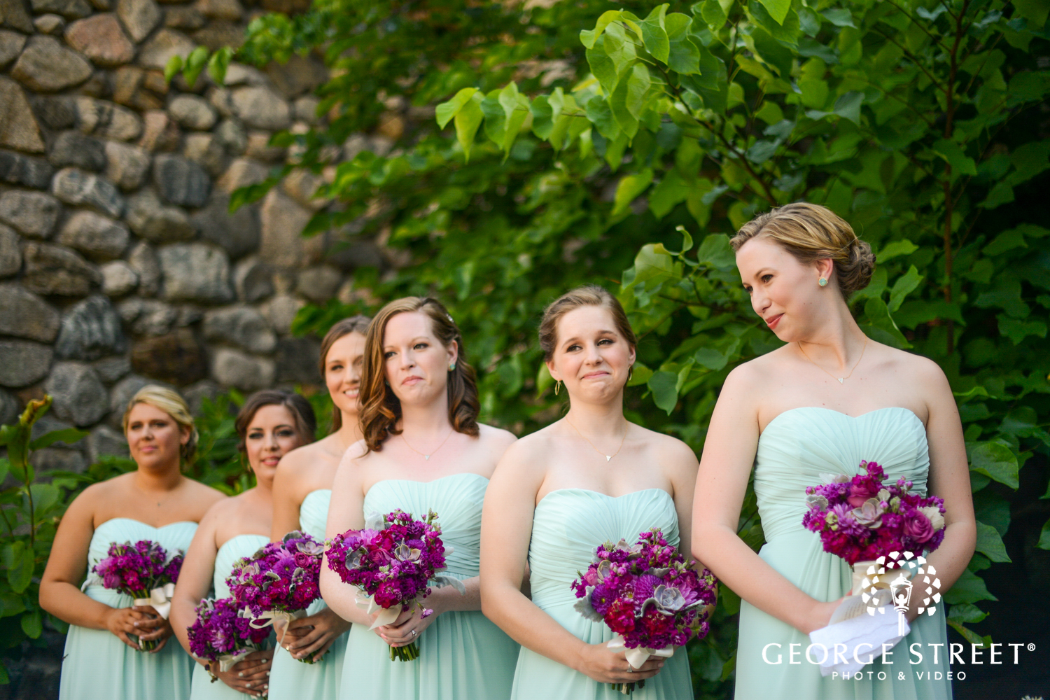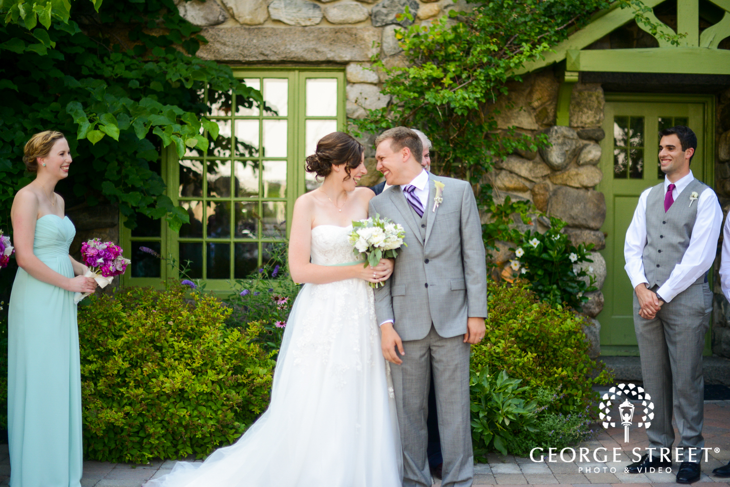 The ceremony and reception were held at Willowdale Estate, a location we won’t soon forget! With its gorgeous cobbled exteriors and ivy covered walls, this venue looks like it came straight out of a fairytale. The vibrantly dressed bridal party, abundance of greenery and open courtyard all came together perfectly to create a dreamy and whimsical atmosphere for Kathryn & Alex’s wedding day.
