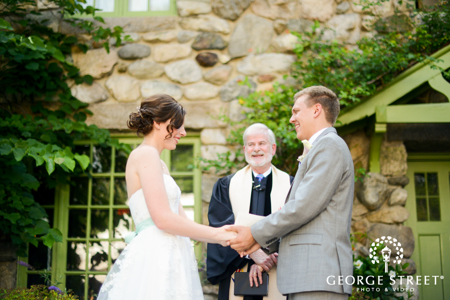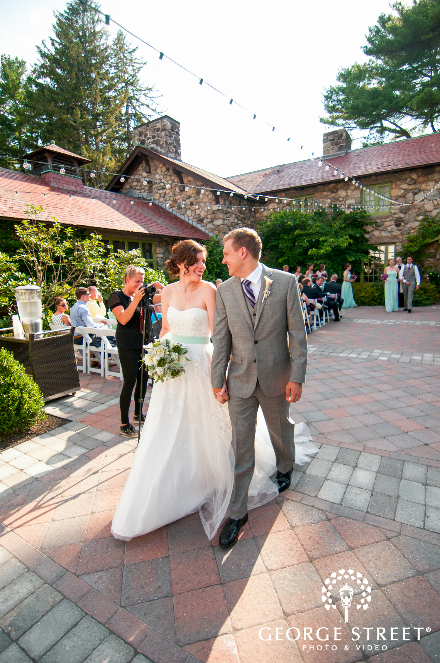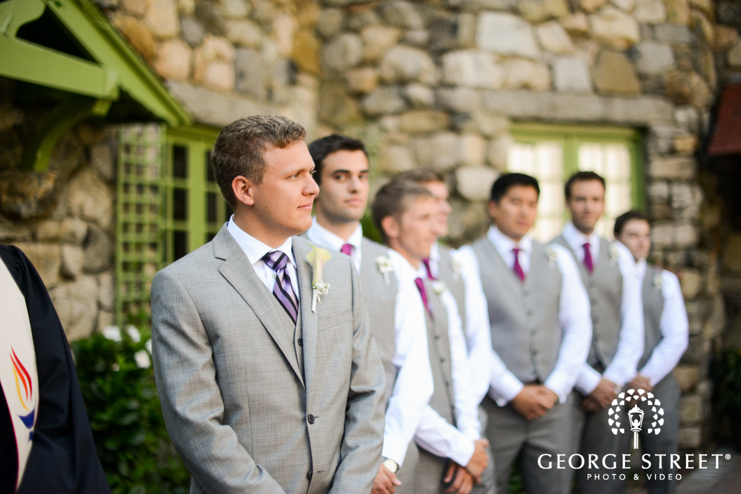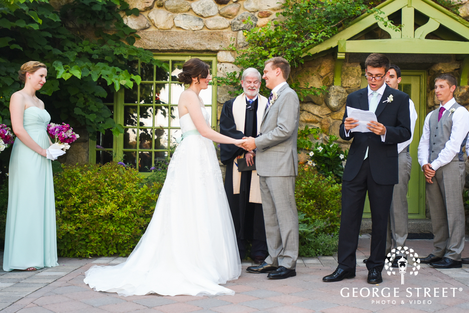 The ceremony and reception were held at Willowdale Estate, a location we won’t soon forget! With its gorgeous cobbled exteriors and ivy covered walls, this venue looks like it came straight out of a fairytale. The vibrantly dressed bridal party, abundance of greenery and open courtyard all came together perfectly to create a dreamy and whimsical atmosphere for Kathryn & Alex’s wedding day.