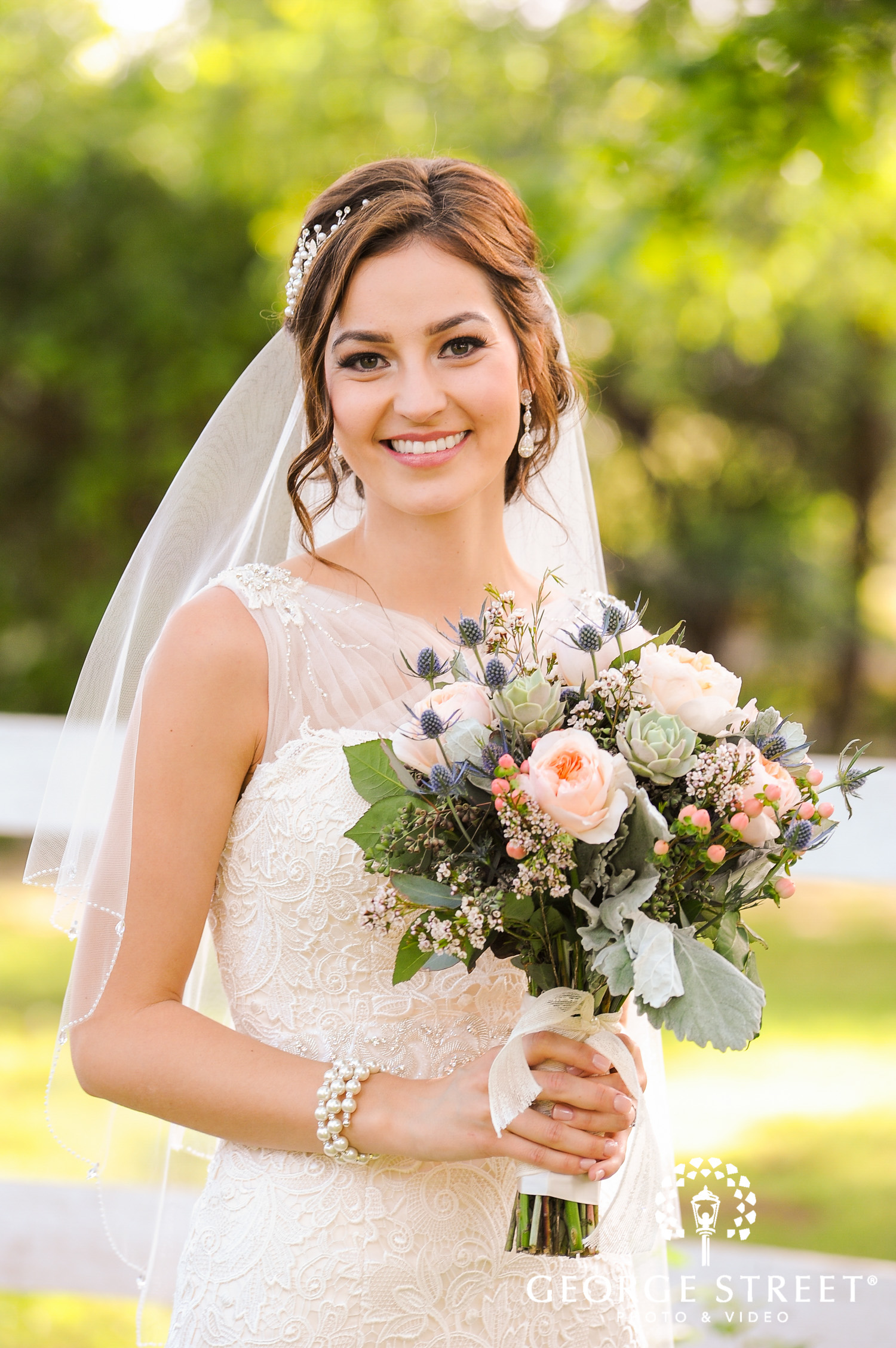 The most beautiful bouquet doesn’t have be to so uniformly perfect. Keili used a variety of light pink peonies, succulents, peach hypericum berries and sea holly, making it seem as if this gorgeous bouquet was plucked right out of the garden and lavishly arranged minutes before the ceremony.