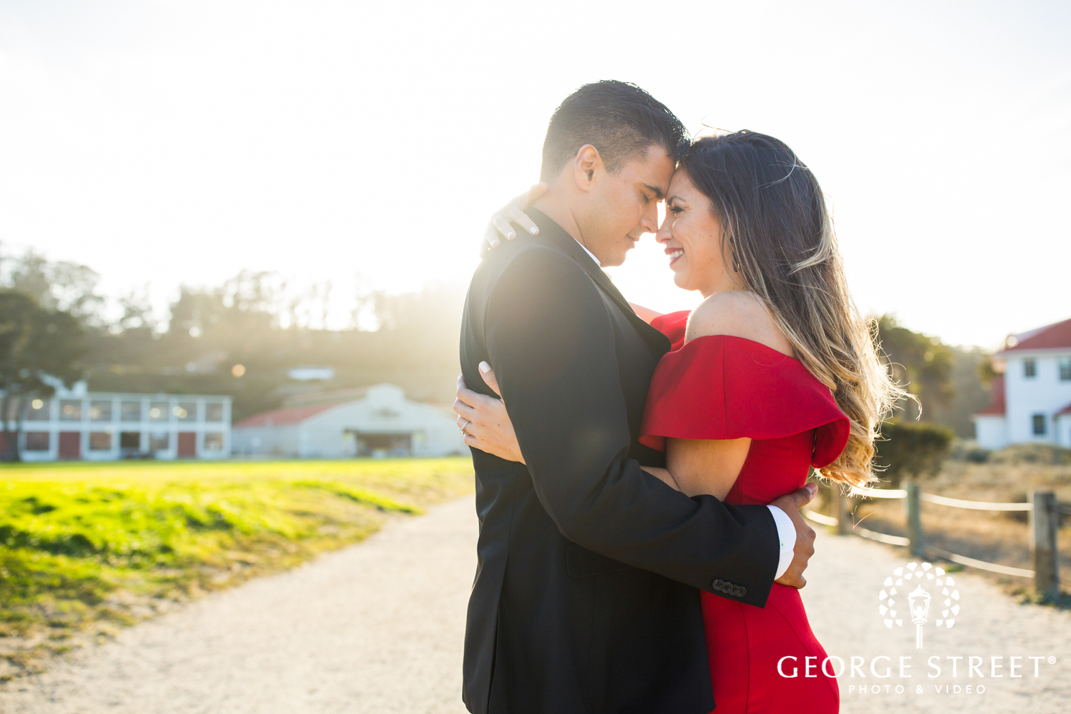 golden hour formal engagement photos