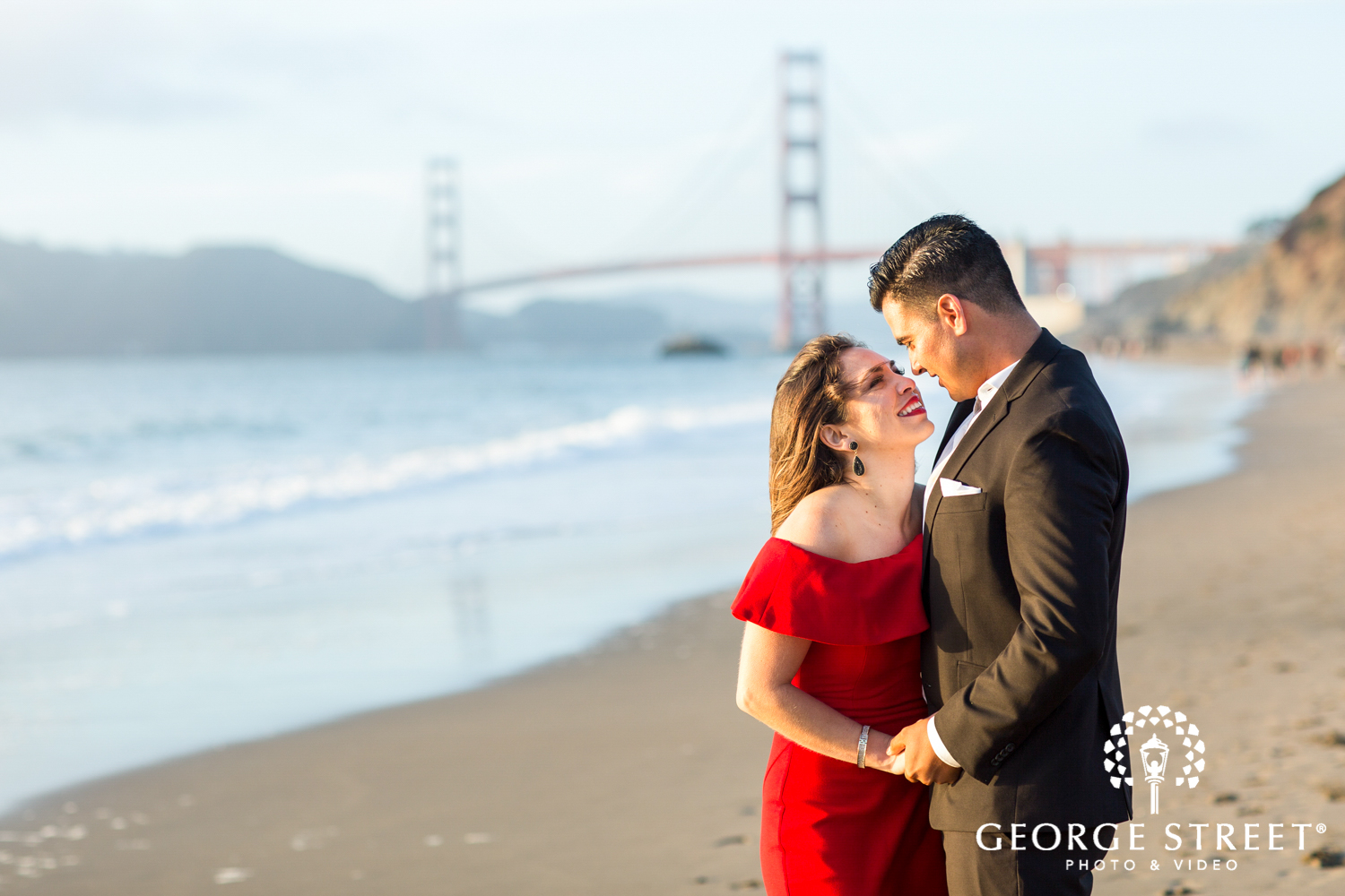 golden gate bridge beach engagement photos