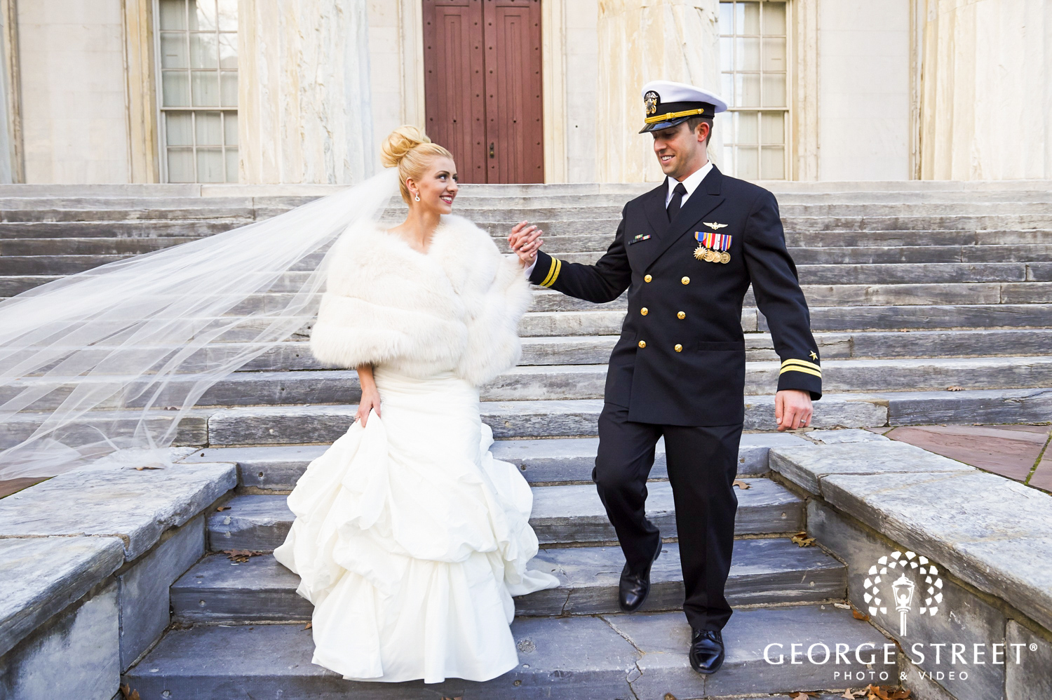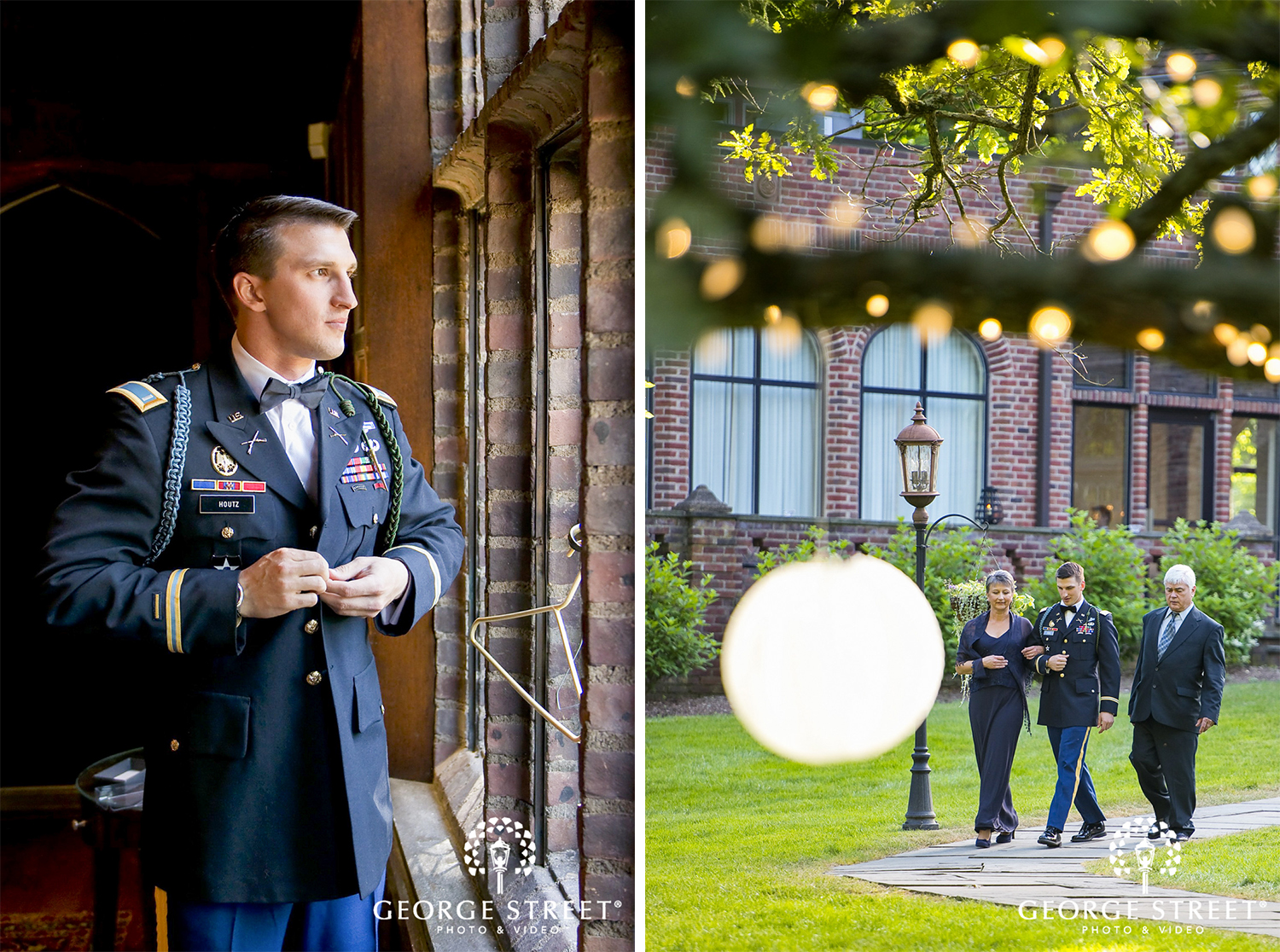 On this Veterans Day, we can't help but feel a debt of gratitude to all of our country’s service members. On this day in 1918, WW1 finally came to close.  With the end of the ‘war of all wars’ as it was then known, Veterans Day became a national holiday to honor those who gave their service and commitment. Here at George Street Photo & Video, we’d like to thank all current and previous military members for their service, and with that, we pay tribute to a few of our favorite military grooms, brides, and their families on their wedding day.