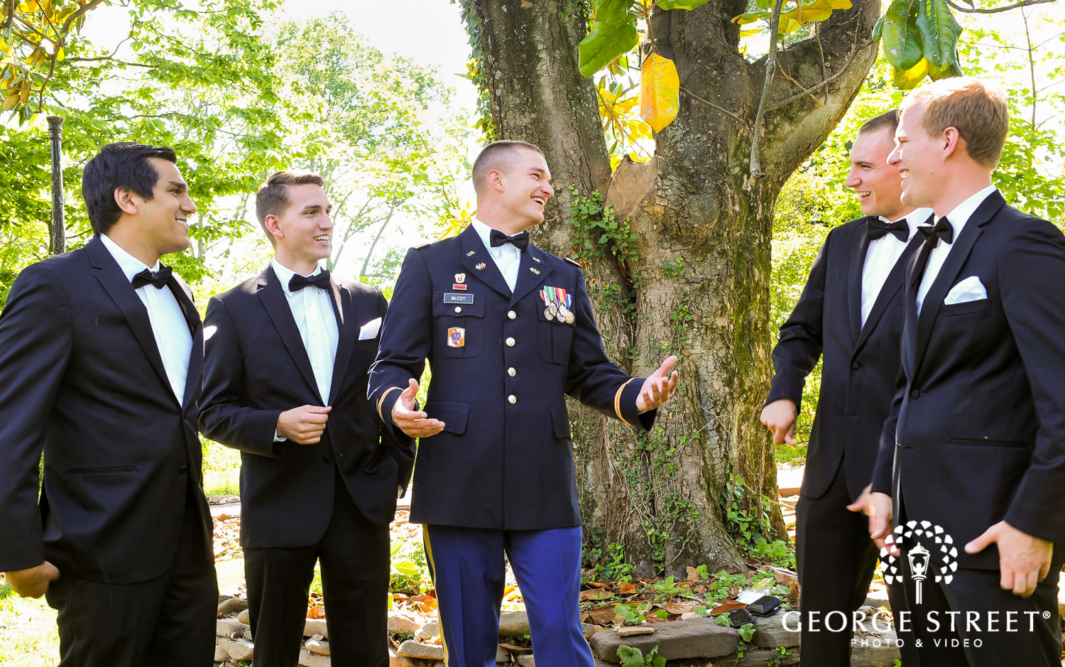 We love this candid shot of our Army groom having a cheerful moment with buddies before his ceremony!